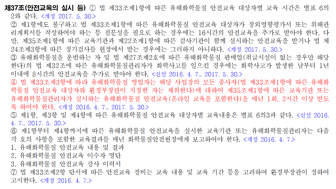 2) 화학물질관리법 시행규칙 제37조(안전교육의 실시 등) 4항