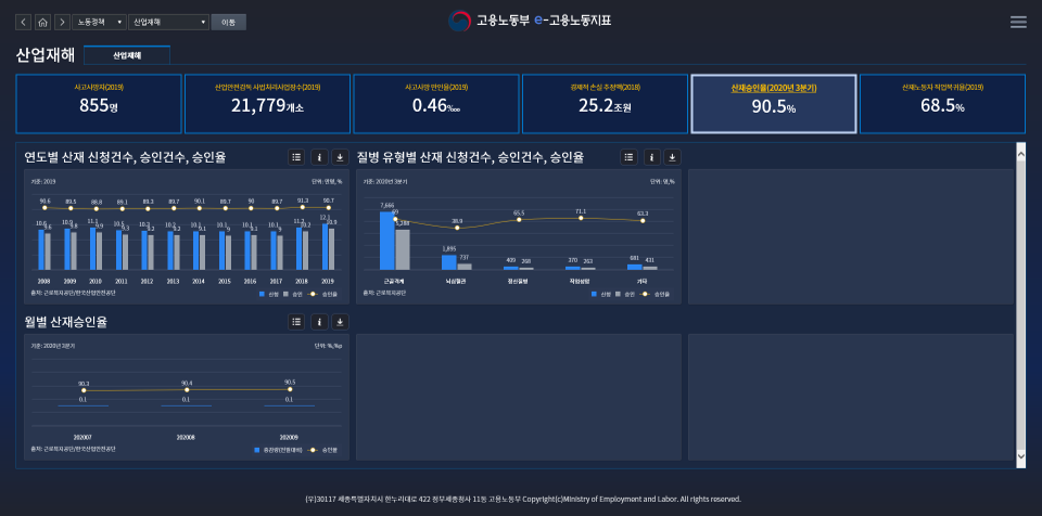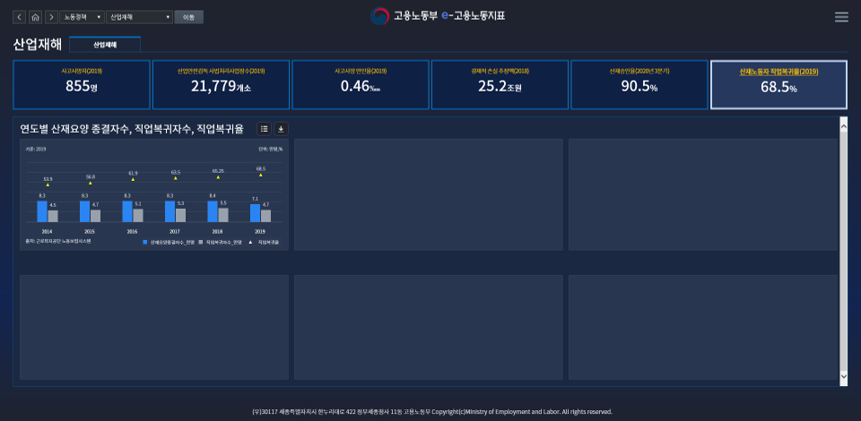 - 산업재해 관련 6개 항목에 대한 정보를 확인할 수 있다.